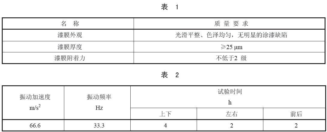 水箱經按表2規定的振動參數和方向進行振動耐久試驗后,應進行密封性試驗,不允許滲漏,其零件不允許損壞。