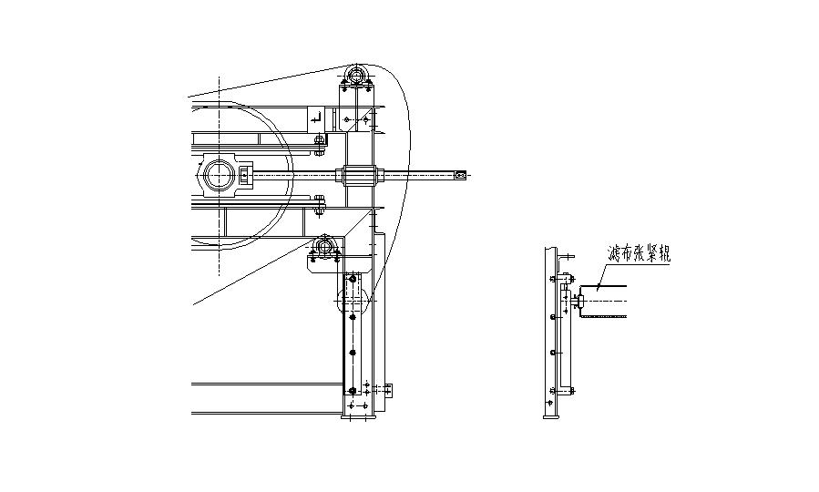 將濾布張緊輥吊至上限位置,兩端插銷固定。